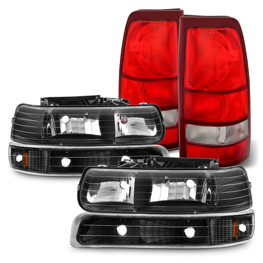 Regular price $174.99This is a 100% brand new pair of Replacement Black Headlights+ Red Clear Tail Lights Compatible With: 1999-2002 Chevy Silverado 1500 / 1500HD / 2500 / 2500HD / 3500 2000-2006 Chevy Suburban 1500 / 2500 2000-2006... -