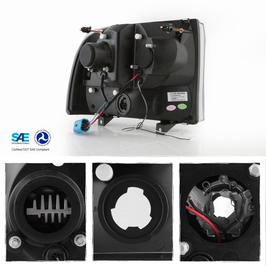 AKKON - Fits 1999-2004 Ford F250/F350/F450/F550 Super Duty Excursion LED Parking Tube Projector Black Headlights Pair Left+Right