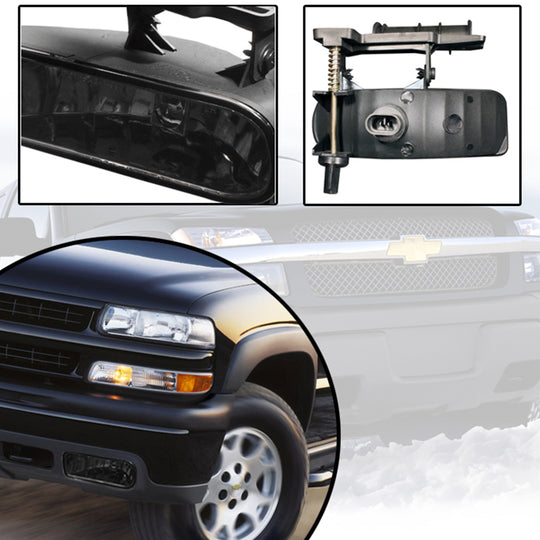 AKKON - Fits 1999-2002 Silverado | 00-06 Suburban Tahoe Smoked Driving Fog Lights + Black Bumper Signal Lamp Amber Side Pair