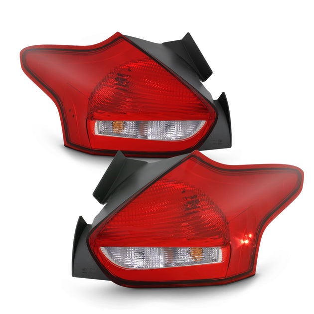 AKKON - Fits 2015-2018 Ford Focus Hatchback Model Chrome Red Tail Lamp Brake Lights Driver Left + Passenger Right Replacement
