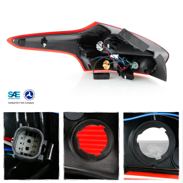 AKKON - Fits 2015-2018 Ford Focus Hatchback Model Chrome Red Tail Lamp Brake Light Driver Left Side Replacement
