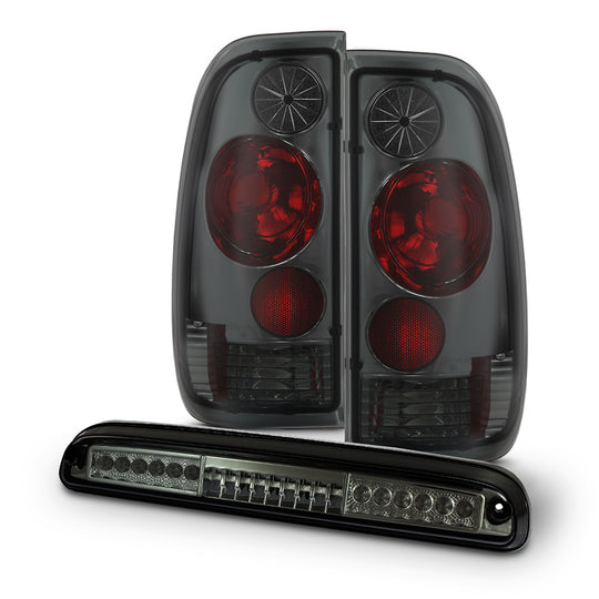 AKKON - Fits 1999-2007 Ford F250 F350 F450 F550 SD Pickup Truck Smoked Tail Light + LED 3rd Brake Lamp Combo Set