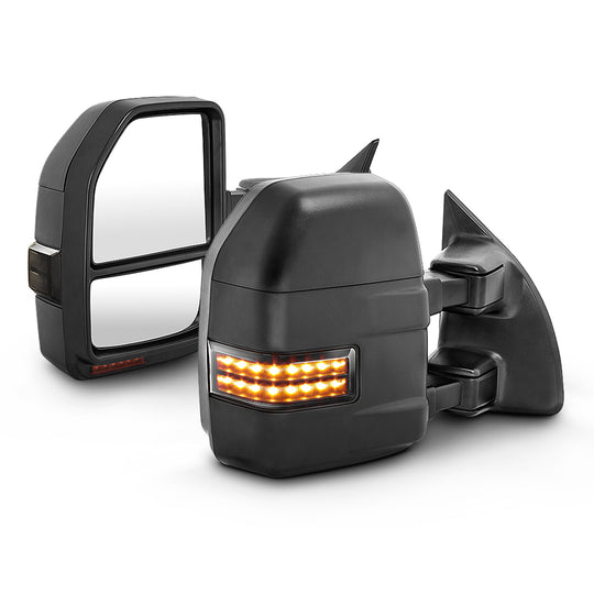 AKKON - Fits 1999-2007 F250/F350/F450/F550 SuperDuty Manual Adjusting Non-Power/Heated Towing Mirror Red Smoked LED Signal Pair