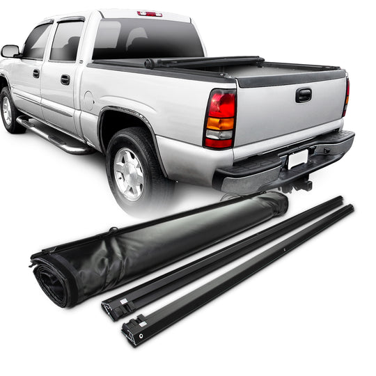 AKKON - Fits 1999-2006 Chevy Silverado GMC Sierra 1500 2500HD 2007 Classic 6.5 Feet 78" Bed Black Soft Roll Up Tonneau Cover