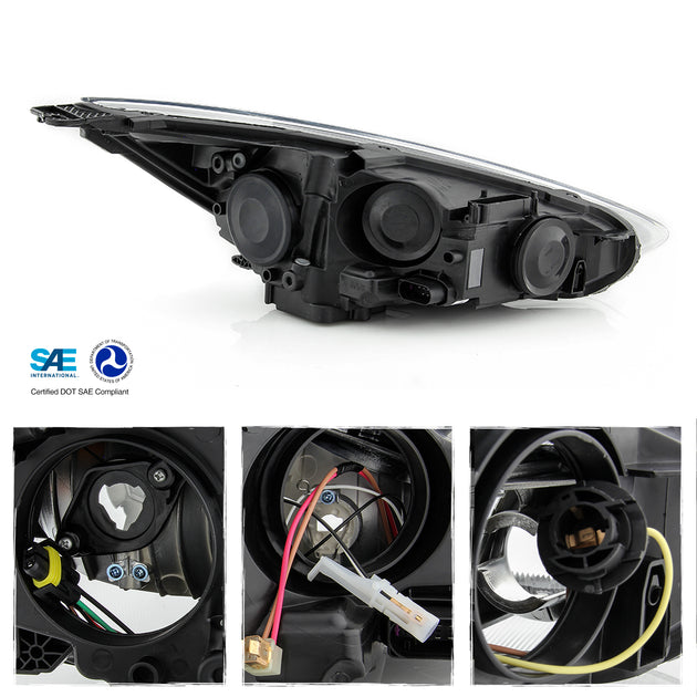 AKKON - Fits 2015-2018 Ford Focus S | SE | ST Chrome Bezel [Halogen Type] Headlight [w/o DRL LED Function] Driver Left Side