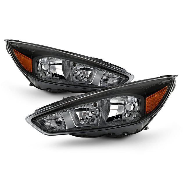 AKKON - Fits 2015-2018 Ford Focus S | SE | ST Model [Halogen Type] Black Headlight [w/o DRL LED Function] Driver and Passenger Side