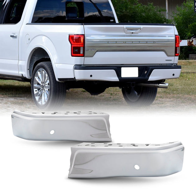 AKKON - Fits 2015-2019 Ford F150 Pickup Truck Chrome Steel Rear Bumper End Cap w/ Parking Sensor Hole Driver + Passenger Pair