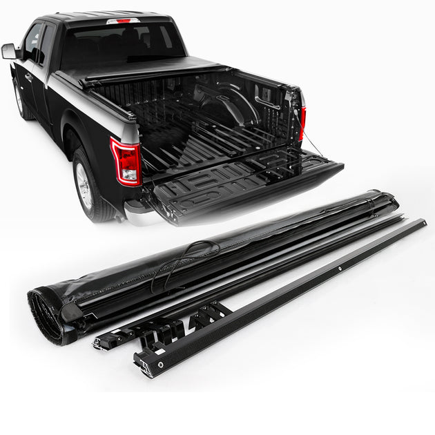 AKKON - Fits 2015-2019 Ford F150 CrewCab Pickup Styleside Models 96 Inches / 8-Feet Black Soft Roll Up Tonneau Cover