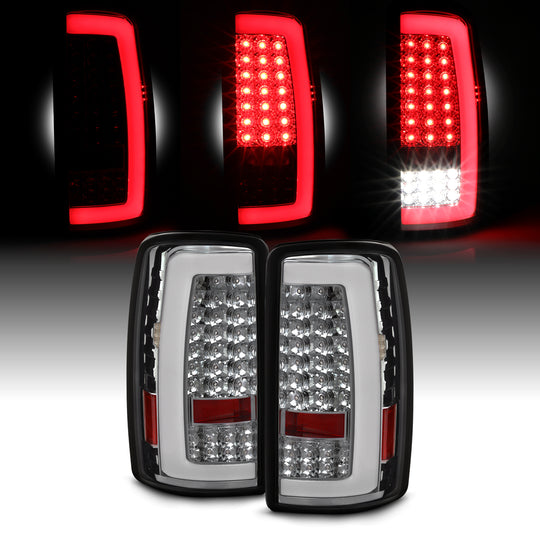 AKKON - Fits 2000-2006 Chevy Tahoe Suburban 1500/2500 GMC Denali Yukon XL Full LED [C-Tube] Chrome Tail Lights Brake Lamp Pair