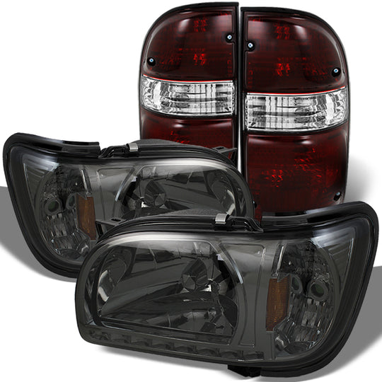 AKKON - Fits 2001 2002 2003 2004 Tacoma 1 Piece Smoked Headlights w/ Black Trim Corner Signal Lamps + Red Smoked Tail Lights