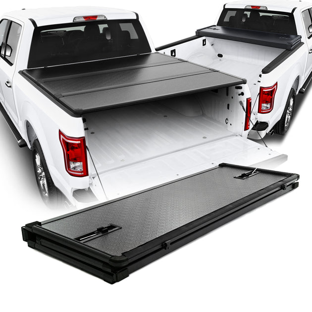 AKKON - Fits 2015-2020 Ford F150 66 Inches 5.6 Feet Fleetside Bed Model [Hard Tri-Fold Style] Black Tonneau Cover