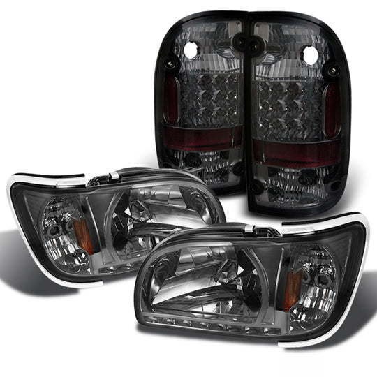 AKKON - Fits 2001-2004 Toyota Tacoma LED Smoked Headlights w/ Corner Light + LED Smoke Tail Brake Lamp Pair Left+Right