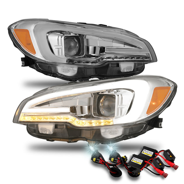AKKON - Fits 2015-21 Subaru WRX Light Bar DRL w/ Sequential Turning Signal Projector Chrome Headlights + 6000K HID Kit