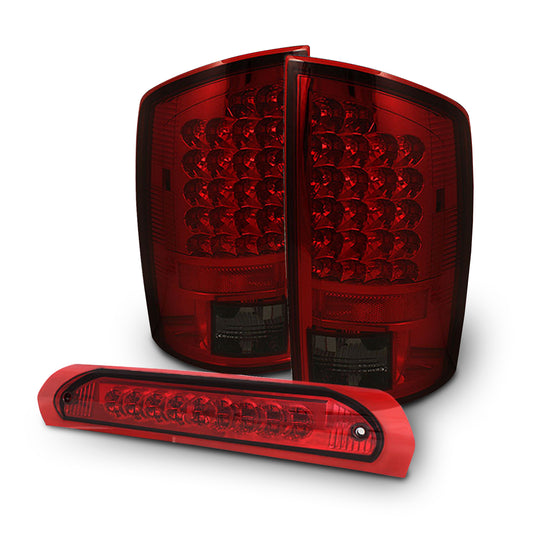 AKKON - Fits 2002-2006 Dodge Ram 1500 03-06 Ram 2500 / 3500 Red Smoked LED Tail Lights + Red 3Rd Brake Lamp Pair LH+RH