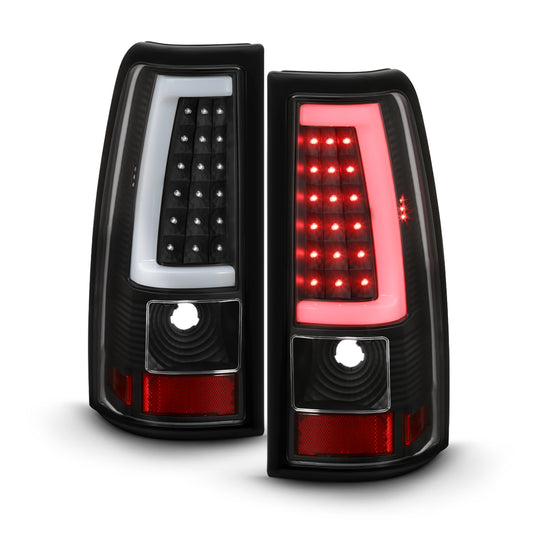 AKKON - Fits 2003-2006 Chevy Silverado 1500/2500/3500/1500HD/2500HD 2007 Classic [C-Tube] Black Tail Lights Brake Lamp Fleetside