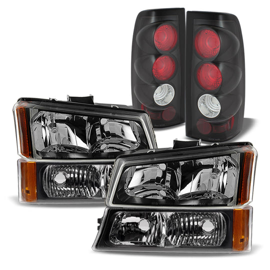 Regular price $136.99This is a 100% brand new pair of Replacement Headlights+ Bumper Signal Lamp+ Tail Lights Black Housing with Clear Lens Compatible With: 2003-2006 Chevy Silverado 1500 / 1500HD 2003-2006 Chevy Silverado 2500 / 2500HD 2004-2006 Chevy... -