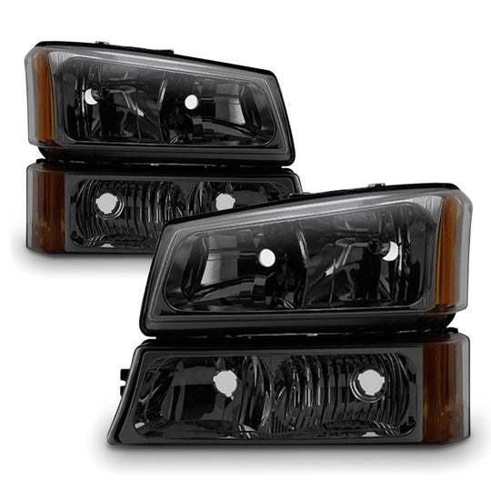 Regular price $187.99This is a 100% brand new pair of Replacement Headlights+ Bumper Signal Lamp+ Tail Lights in Chrome Housing with Smoked Lens Compatible With: 2003-2006 Chevy Silverado 1500 / 1500HD 2003-2006 Chevy Silverado 2500 / 2500HD 2004-2006... -