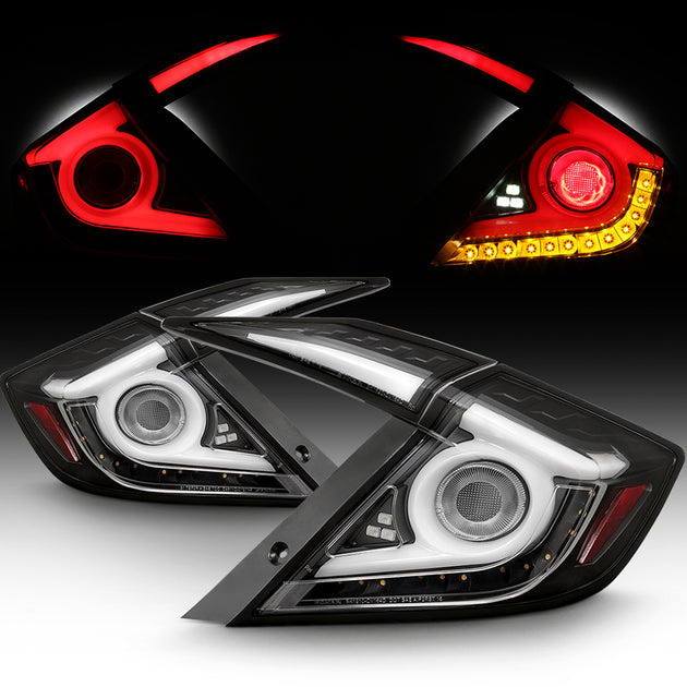 AKKON - Fits 2016-2021 Honda Civic Sedan Black Lumiled LED Tube Tail Brake Lamp Pair w/ Led Sequential Amber Signal Left+Right