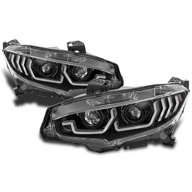 AKKON - Fits 2016-2021 Honda Civic Sedan [Tube Light Bar] Sequential Side Signal Projector Black Headlights Pair Left + Right
