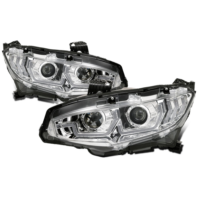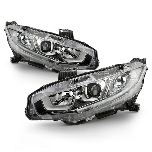 AKKON - Fits 2016-2021 Honda Civic EX/ EX-T/ LX/ EX-L/ LX-P/ DX [Halogen Type] Tube Projector Headlight Left+Right Pair