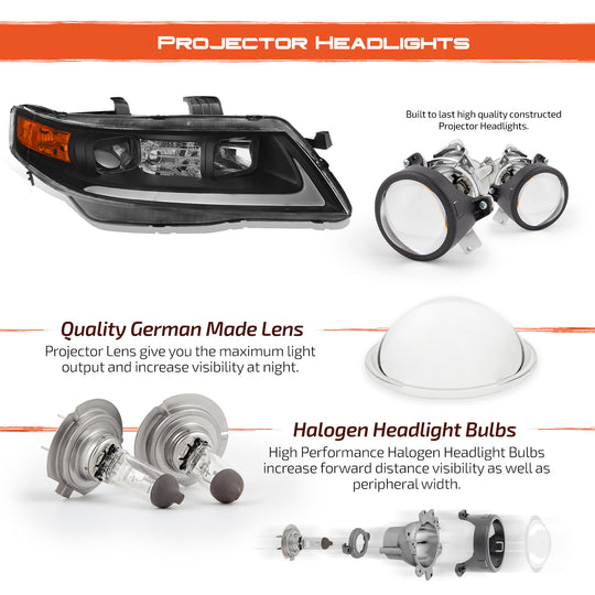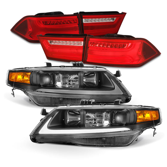 AKKON - Fits 2004-2008 Acura TSX Light Bar Projector Headlights + LED Tail Lamps Combo [Black Housing]