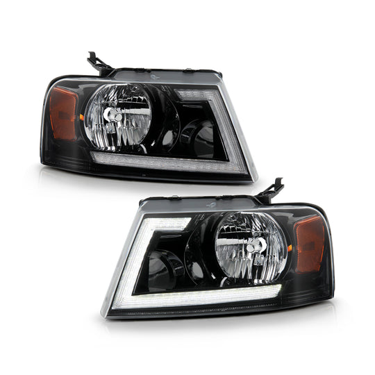 AKKON - Fits 2004-2008 Ford F150 06-08 Lincoln Mark LT Pickup Truck [LED-Tube Running Switchback Turn Signal] Black Headlights