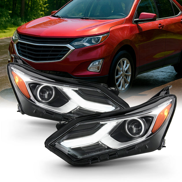 AKKON - Fits 2018 2019 2020 2021 Chevy Equinox [Halogen Type] LED Tube DRL Black Headlight Driver Left+Passenger Right Headlamp