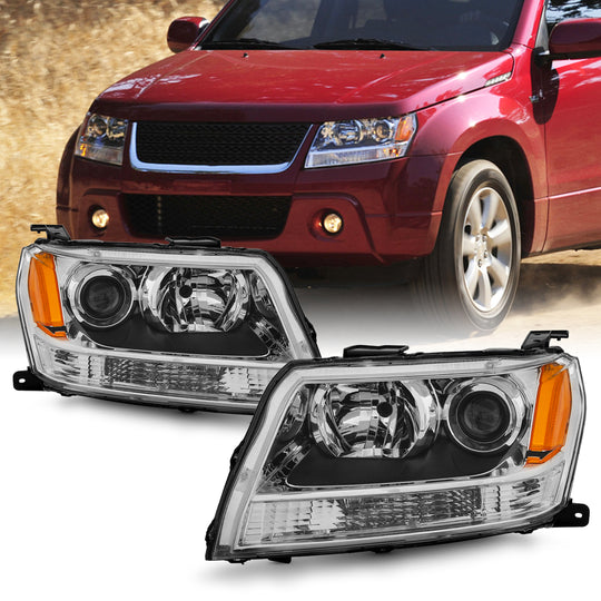 AKKON - Fits 2006 2007 2008 Suzuki Grand Vitara Halogen Projector Chrome Headlights Headlamps Pair Driver+Passenger
