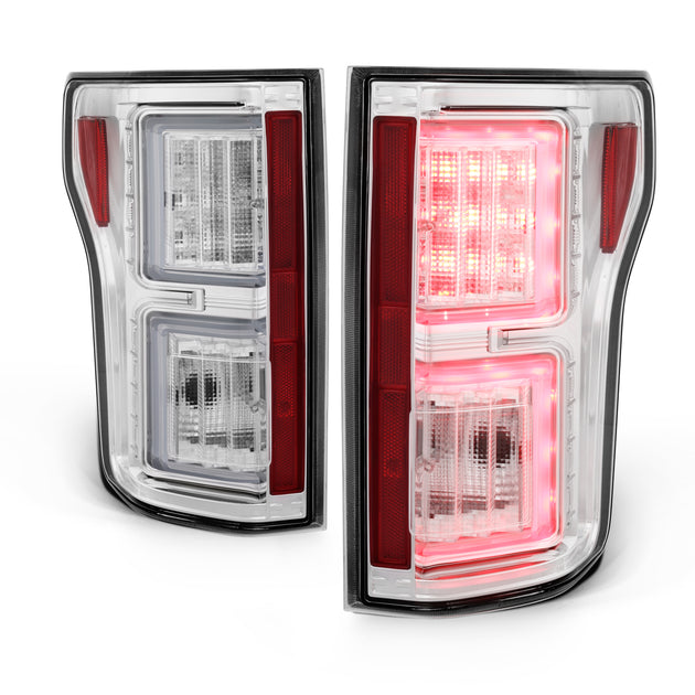 AKKON - Fits 2018-2019 Ford F-150 F150 Truck [Dual C-Light Bar] LED Chrome Tail Light Brake Lamp Left+Right Pair 18 19