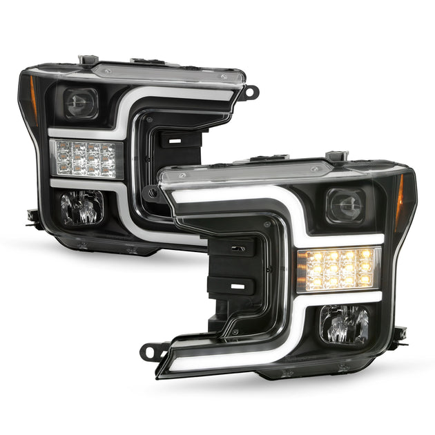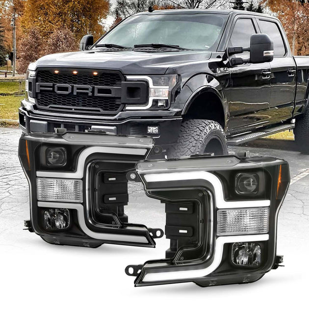 AKKON - Fits 2018-2020 Ford F150 Pickup Truck [Halogen Type] Projector Black Headlights w/ LED Sequential Signal Pair Left+Right