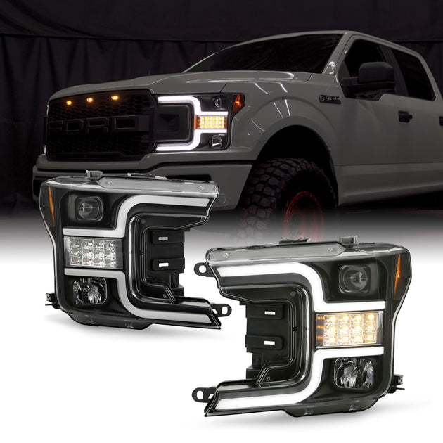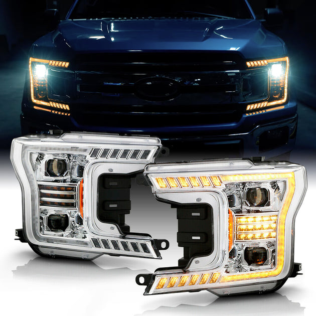 AKKON - Fits 2018-2020 Ford F150 Amber DRL Sequential Signal Parking [Full LED] Halogen Projector Chrome Headlights Pair