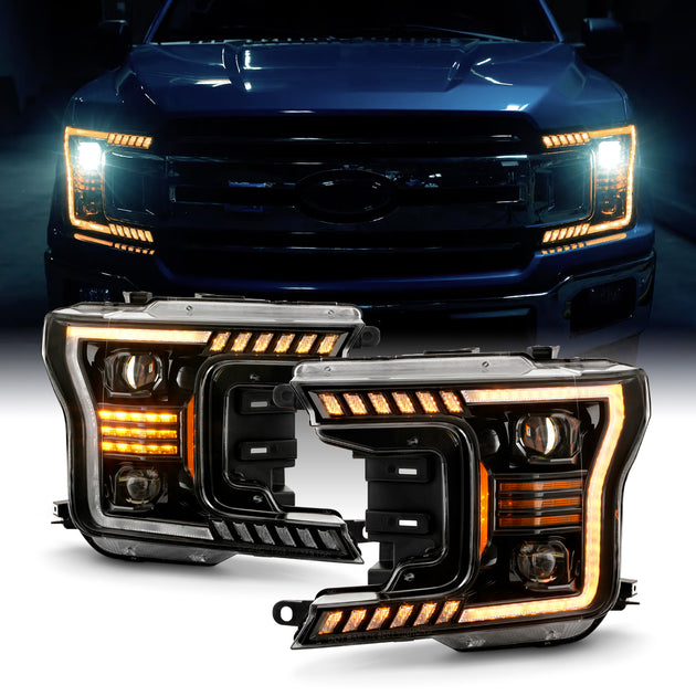 AKKON - Fits 2018-2020 Ford F150 Pickup [Full LED] Projector Black Headlights Pair w/ Sequential Signal Amber Parking Lamp