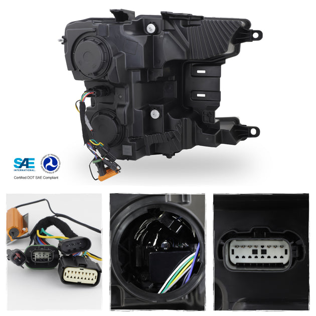 AKKON - Fit 2022 2023 2024 Toyota Tundra 22-24 Chrome Housing LED w/ Halogen Signal Headlight Headlamp OE Style Driver Passenger Side Direct Replacement