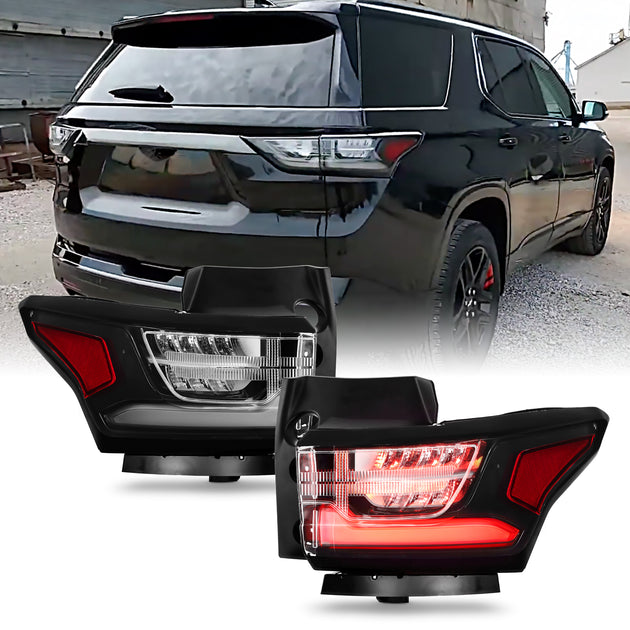 AKKON - Fits 2018-2021 Chevy Traverse [FULL LED] Black Clear Tail Lights Pair Driver+Passenger Outer w/ Redline Pkg