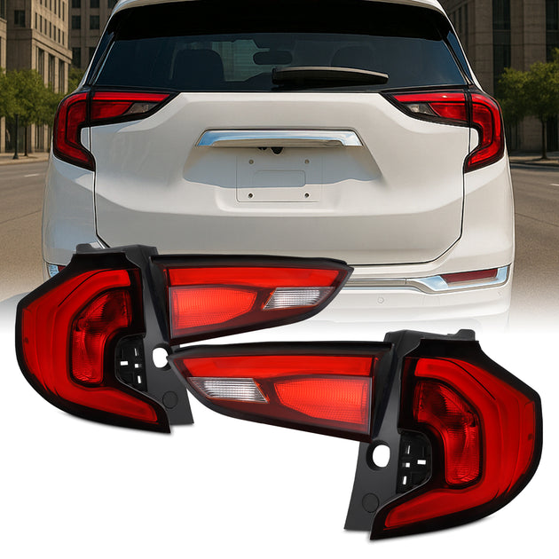 AKKON - Fits 2018-2023 GMC Terrain Denali Chrome Red Tail Lights Outer+Inner Pair 4Pcs Left+Right w/ LED Tube DRL Signal