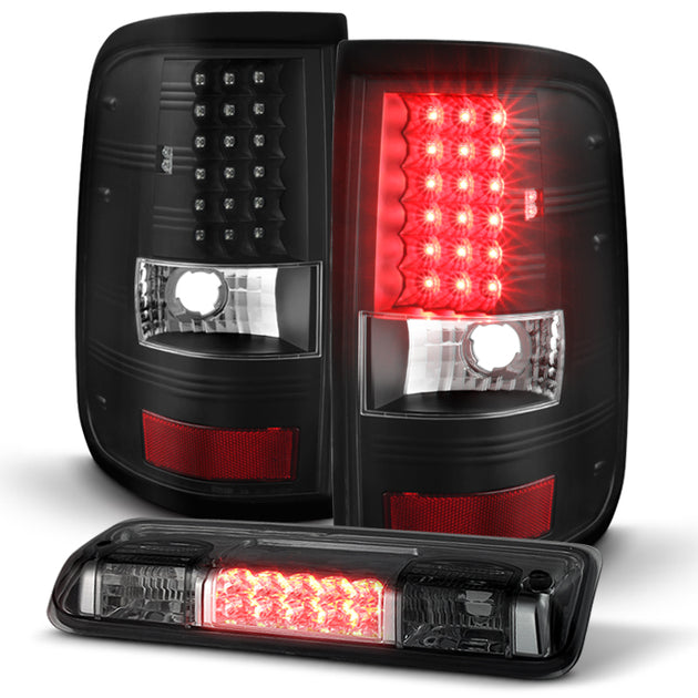 AKKON - 3PCS Black LED Tail Light & Smoked 3RD Brake Lamp For 2004 05 06 07 08 F150 F-150 Pickup Truck