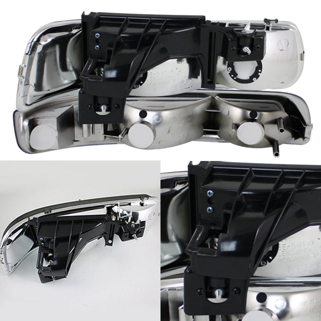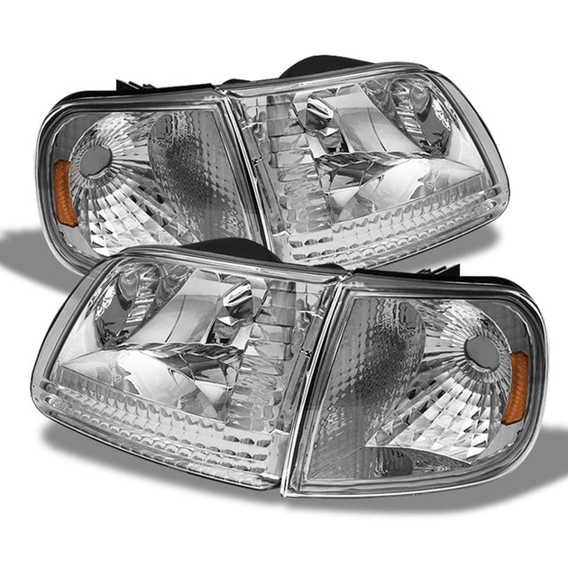 AKKON - 4Pcs Fits 97-03 F150 04 F-150 Heritage 97-99 F250 97-02 Expedition Chrome Headlights + Corner Signal Lamps Pair LH+RH