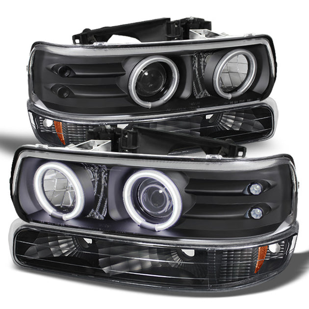 AKKON - 4PCS For Black 99-02 Silverado | 00-06 Suburban/Tahoe | CCFL Halo Projector LED Headlights + Bumper Turn Signal Lights