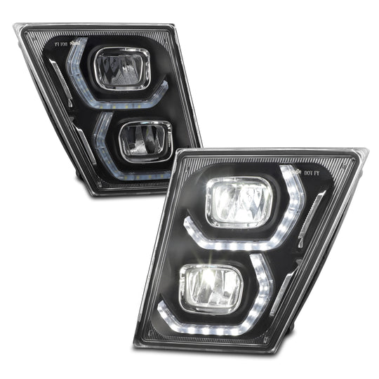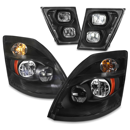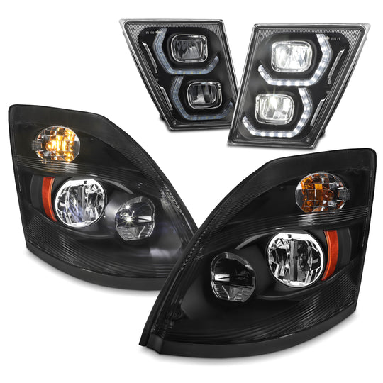 AKKON - Fit 2003-2017 Volvo VNL Truck LED Headlights Set + LED Bumper Fog Lights Lamp Black Housing Pair