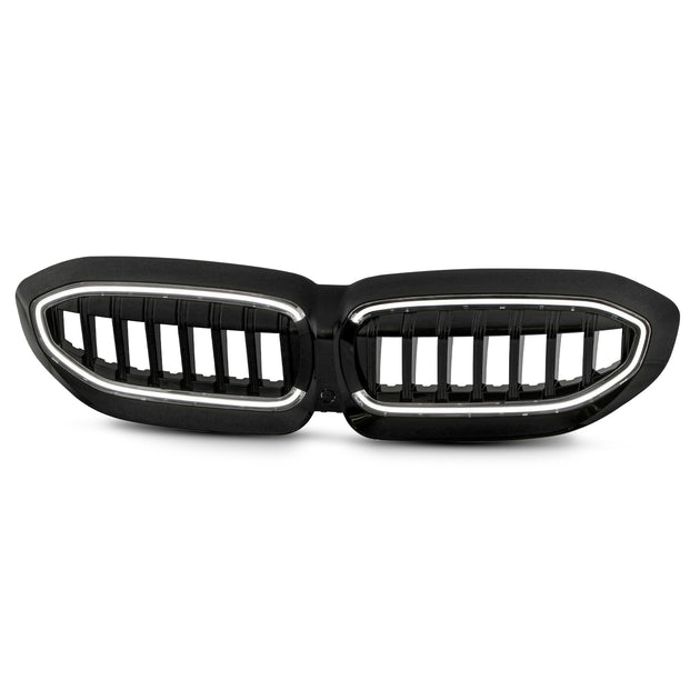 AKKON - Fits 2019-2022 BMW 3 Series G20 320i 330i Black Grille Front Bumper Grill +LED Tube Welcome Light w/Accessories
