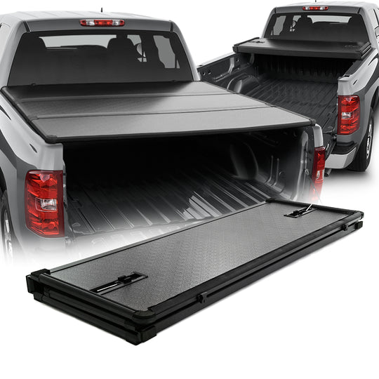 AKKON - Fits 2007 2008-2013 GMC Sierra Chevy Silverado 1500 68 Inches 5.8 Feet Bed [Hard Tri-Fold Style] Black Tonneau Cover