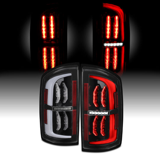 AKKON - Fits 2007-2008 Dodge Ram 1500 07-09 Ram 2500 3500 Pickup LED Black Tail Lights Brake Lamp Pair Driver+Passenger