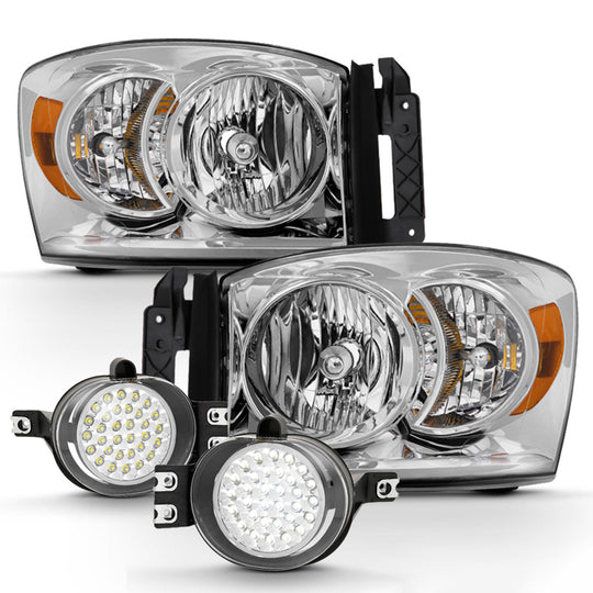 Regular price $174.99This is a 100% brand new pair of Replacement Headlights + Fog Lights in Chrome Housing with Clear Lens Compatible With: 2007-2008 Dodge Ram 1500 Models 2007-2009 Dodge Ram 2500 Models 2007-2009 Dodge Ram 3500 Models... -