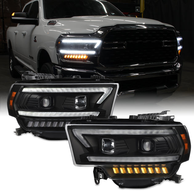AKKON - Fits 2019-2022 RAM 2500 3500 [Halogen Type] Projector Black Headlights w/ LED Running Lamp + Sequential Signal