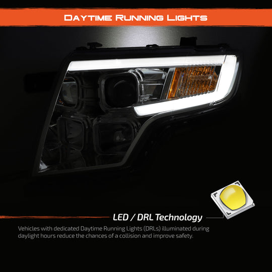 AKKON - Fits 2007-2010 Ford Edge LED Light Tube Stylish DRL Projector Headlights Pair Housing - Polished Chrome