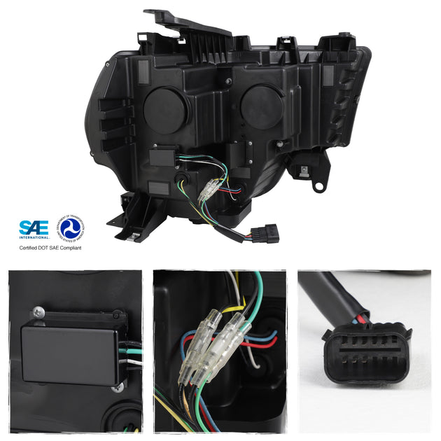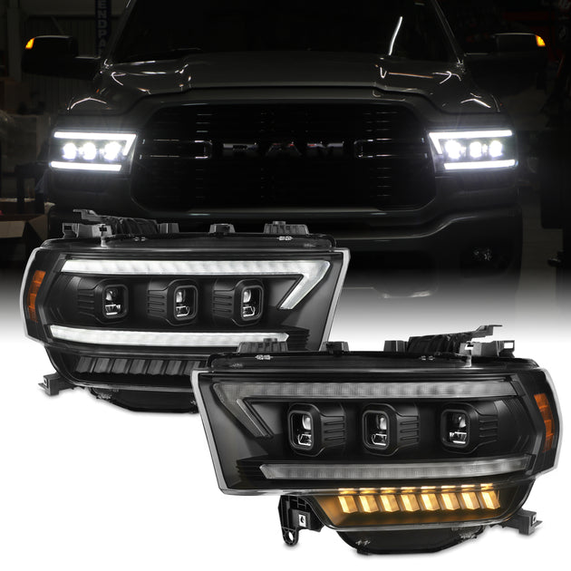 AKKON - Fits 2019-2023 RAM 2500 3500 [Halogen Type] Black Headlights Pair w/ LED High&Low Beam + Sequential Signal Tube