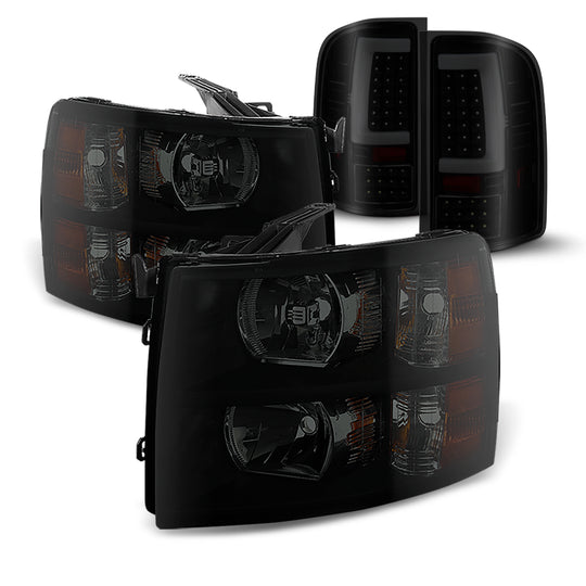 Regular price $238.99This is a 100% brand new pair of Replacement Headlights + LED Tail Lights in Black Housing with Smoked Lens Compatible With: 2007-2013 Chevy Silverado 1500 2007-2014 Chevy Silverado 2500 / 2500HD 2007-2014 Chevy Silverado 3500... -