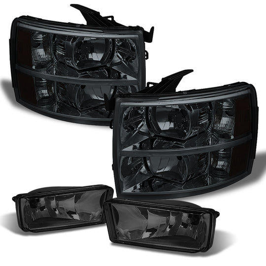 AKKON - Fits 2007-2013 2014 Chevy Silverado 1500 / 2500HD / 3500HD Smoked Headlights + Smoke Fog Light Lamps Pair Left+Right