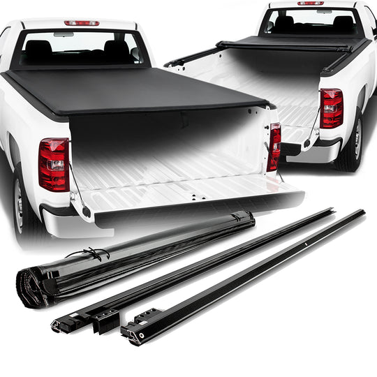 AKKON - Fits 2007-2013 2014 Chevy Silverado GMC Sierra 1500/2500HD/3500HD 96 Inches 8-Feet Bed Black Soft Roll Up Tonneau Cover