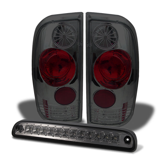 AKKON - Fits 99-07 Ford F250/350/450/550 Super Duty Pickup Truck Smoked Tail Light + Smoked LED 3rd Brake Light Combo